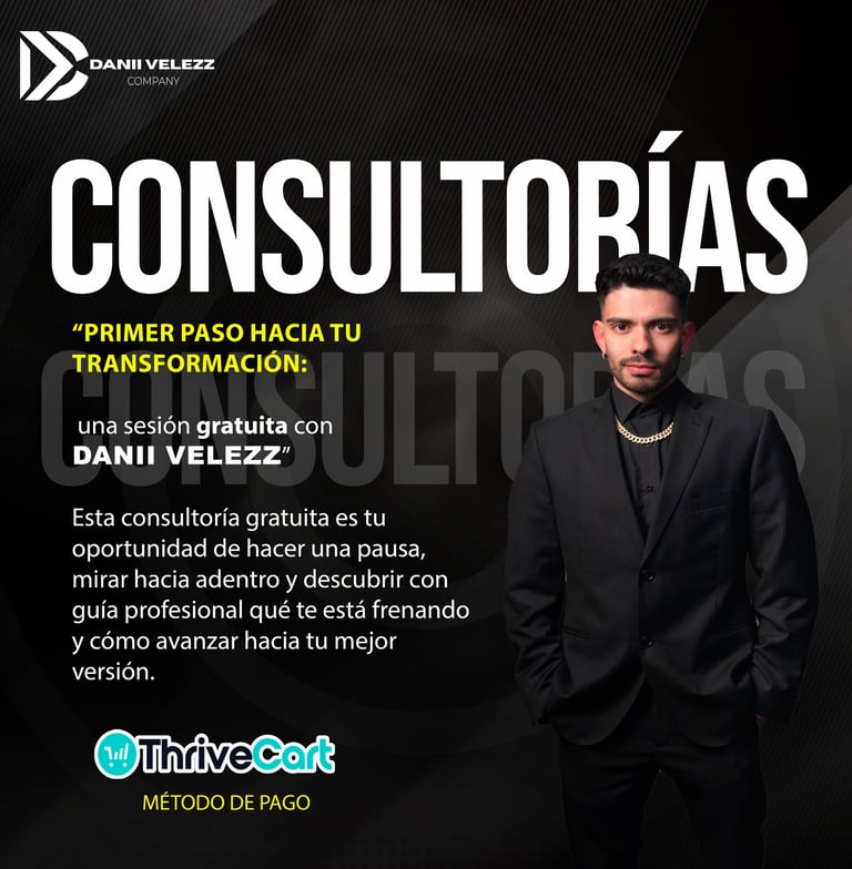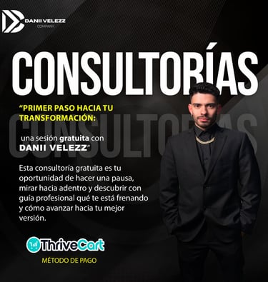Las consultorías online con Danii Velezz son sesiones personalizadas diseñadas para ayudarte a desbloquear tu potencial, fortalecer tu mentalidad y tomar decisiones claras para tu vida personal o profesional.